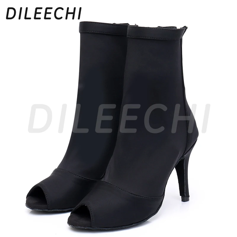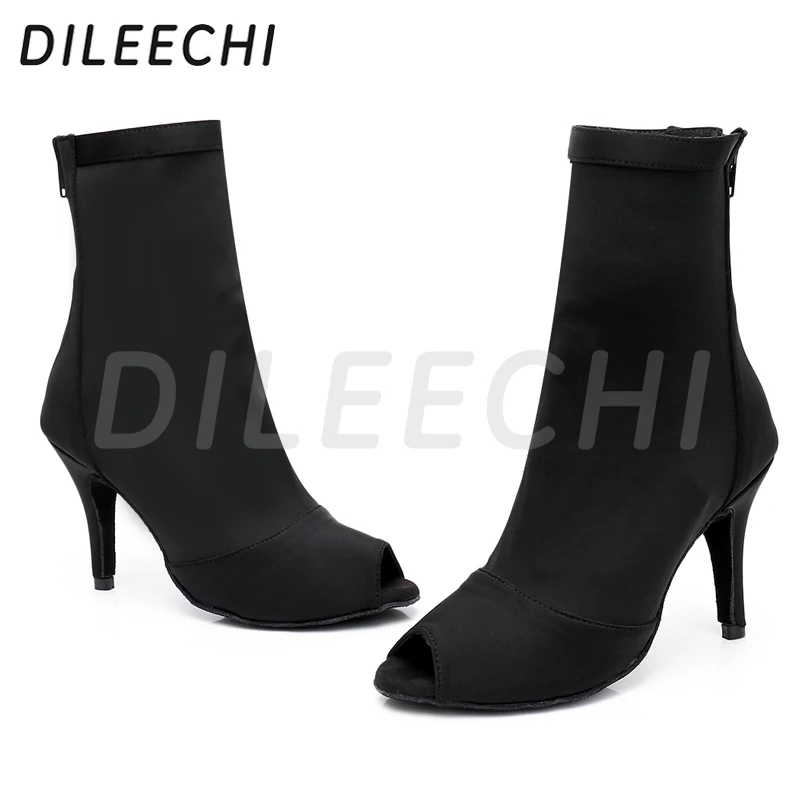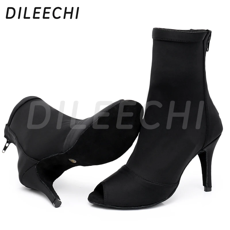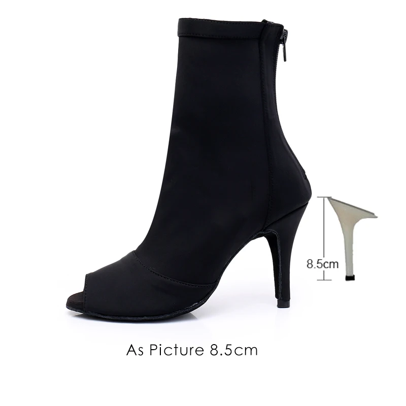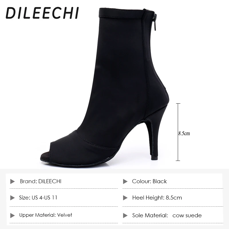 Incarnez l’élégance avec ces bottines de danse en velours noir, idéales pour les soirées salsa, mariages ou ballroom, avec un talon haut et une semelle souple pour une danse fluide.