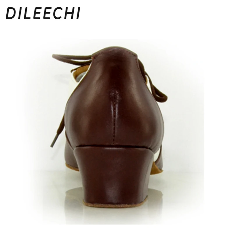 Évoluez sur la piste avec assurance grâce à ces chaussures de danse latine pour homme en cuir marron. Leur talon modéré et la semelle souple offrent un confort optimal pour toutes les danses de salon.