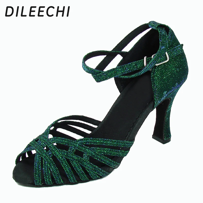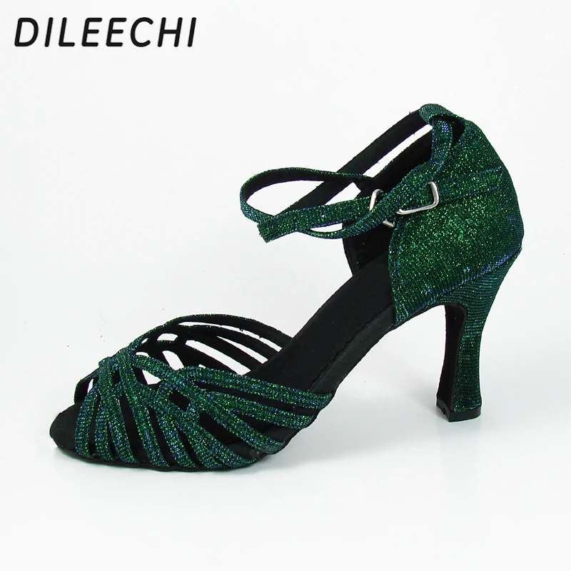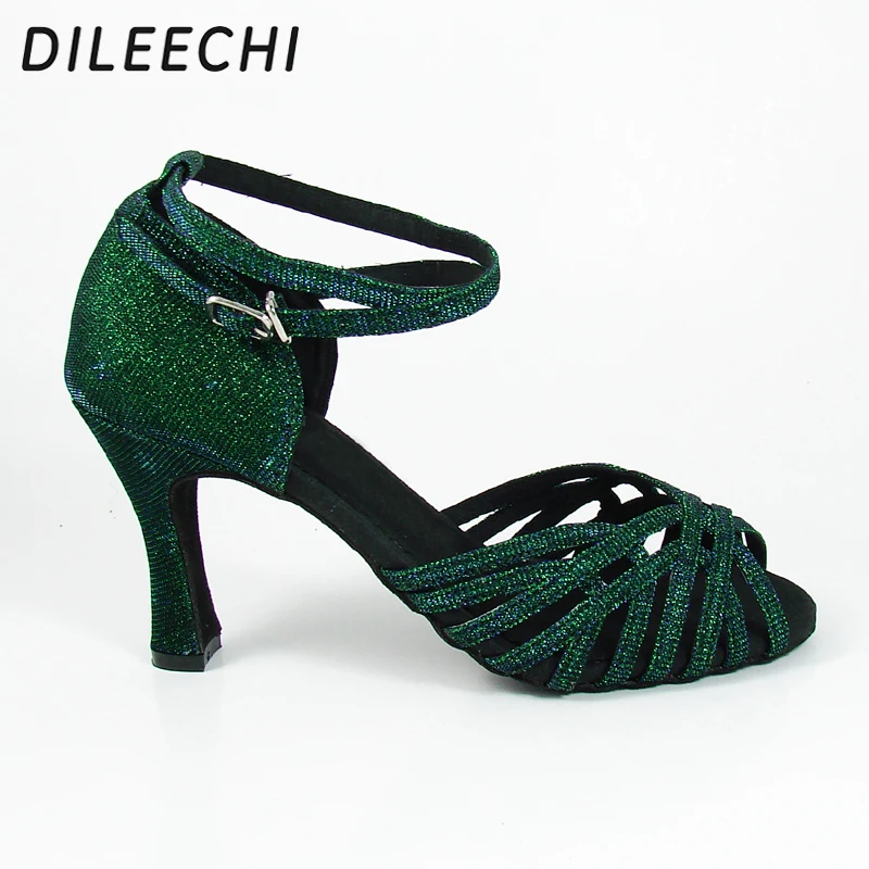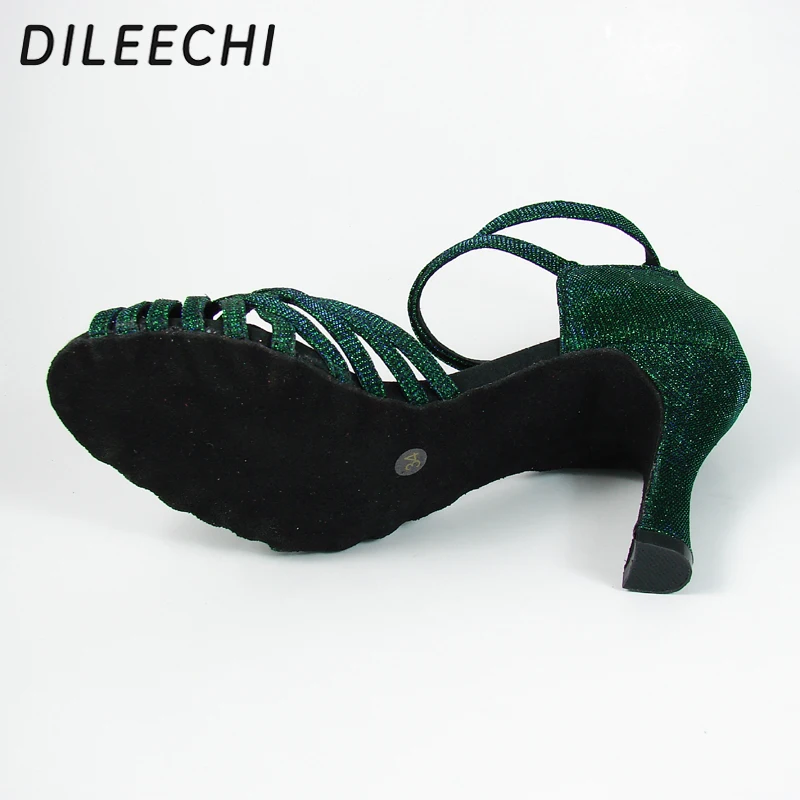 Vert flash, talons ajustables 6cm/5cm, idéales pour samba et ballroom.