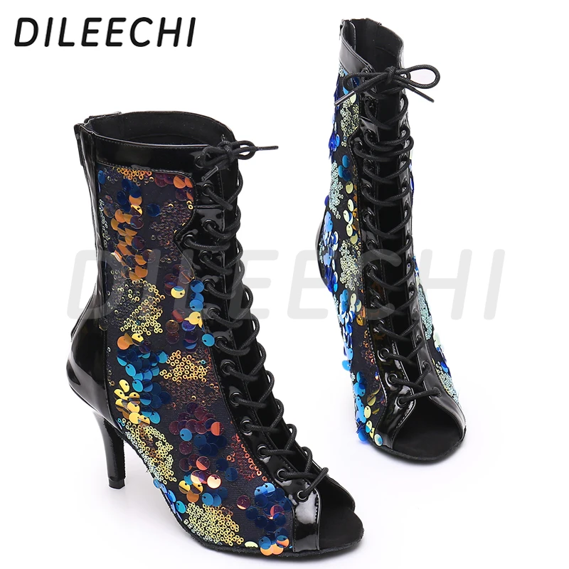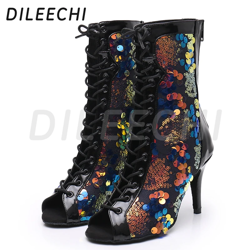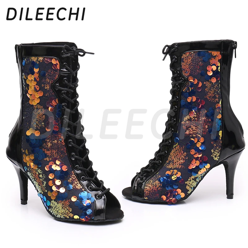 Ces sandales en satin tan sont le choix parfait pour les saisons plus fraîches, offrant élégance et confort avec un talon fin de 7.5cm pour vos événements de danse moderne.