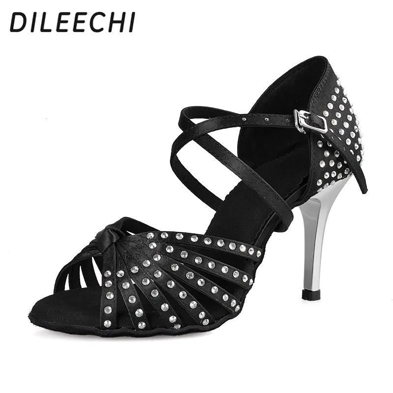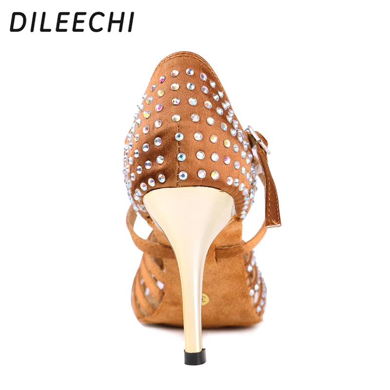 Rhinestones dorés, talon de 85mm, pour salsa et ballroom.